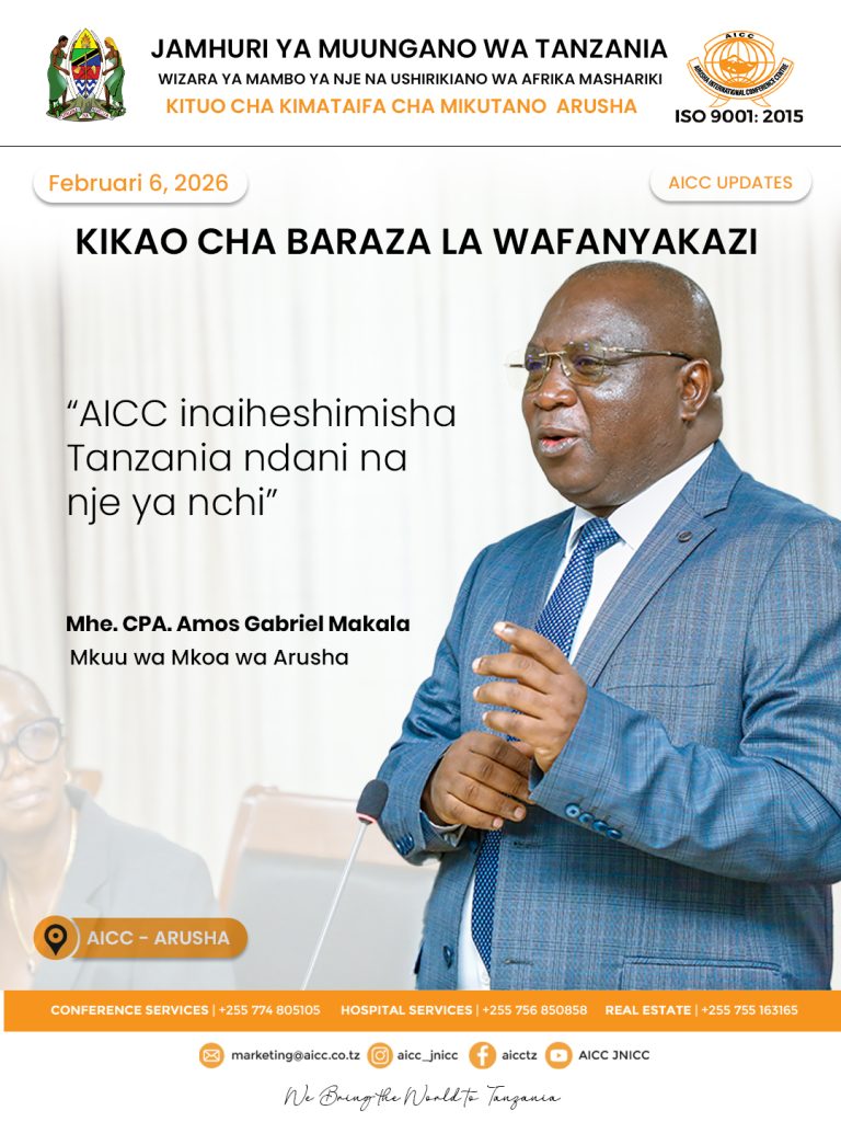 Wafanyakazi wa Kituo cha Kimataifa cha Mikutano Arusha (AICC) wametakiwa kuogeza bidii katika kufanya kazi ili Kituo kiendelee kuongeza mapato zaidi katika kutoa huduma za utalii wa mikutano nchini.Rai hiyo imetolewa na Mkurugenzi Mtendaji wa Kituo hicho Bi. Christine G. Mwakatobe, leo tarehe 3 Februari 2026 alipokutana na wafanyakazi kwa ajili ya kujadili mambo mbalimbali ya kukiendeleza kituo na kijipanga vyema kwa mwaka 2026.Katika mkutano huo uliofanyika Makao Makuu ya AICC jijini Arusha, Bi. Mwakatobe amesema kila mtu akijituma kwa nafasi yake katika kuhudumia wateja, AICC itaendelea kupiga hatua kubwa ya ufanisi kadri muda unavyosogea.Vile vile, amechukua nafasi hiyo kutoa pongezi za dhati kwa Menejimenti na Watumishi wote kwa weledi na jitihada zilizopelekea mafanikio makubwa ya kiutendaji kwa mwaka uliopita, huku akisisitiza azma ya kuzidisha huduma kwa wateja.AICC pamoja na Kituo cha Kimataifa cha Julius Nyerere (JNICC) kilichopo jijini Dar es Salaam vimeendelea kutoa huduma za mikutano ya kimataifa na kikanda hali ambayo imeonesha utayari na uwezo wa kuhudumia mikutano ya kiwango hicho.