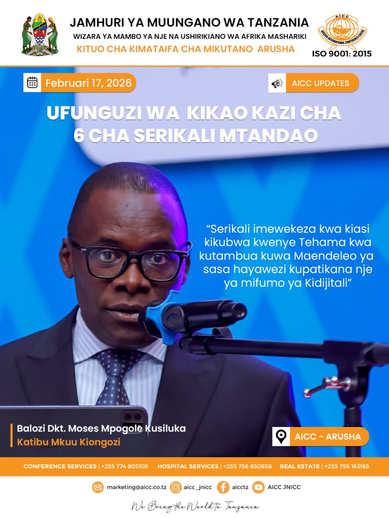 Jana, Februari 18,2026, Katibu Mkuu Kiongozi, Mhe. Balozi Moses Mpogole Kusiluka, amefungua rasmi Kikao Kazi cha Sita cha Mwaka cha Serikali Mtandao (e-GA) katika Kituo cha Kimataifa cha Mikutano Arusha(Aicc) “Serikali imewekeza kwa kiasi kikubwa kwenye TEHAMA kwa kutambua kuwa maendeleo ya sasa hayawezi kupatikana nje ya mifumo ya kidijitali” Amesema Mhe. Kusiluka Mafanikio ya Tanzania katika nyanja hii yameendelea kung’ara kimataifa, ambapo Mhe. Balozi ametoa pongezi za dhati kwa bodi, menejimenti, na wadau wote wa e-GA kwa kazi nzuri iliyopelekea nchi yetu kutambuliwa na kutunukiwa tuzo ya kimataifa ya Huduma za Umma ya Umoja wa Mataifa (United Nations Public Service Award). Tuzo hii ni ushahidi tosha kuwa Tanzania ipo katika mwelekeo sahihi wa mageuzi ya kidijitali yanayozingatia weledi, ufanisi, na viwango vya juu vya kimataifa katika utoaji wa huduma kwa umma. Kwa siku hizi tatu za kikao kazi, matarajio ni kuona washiriki wakitumia jukwaa hili kubuni na kuja na masuluhisho yatakayoleta tija zaidi badala ya uharibifu. Ni wakati wa kuwa na mtazamo chanya na kuwekeza kwenye matumizi sahihi ya TEHAMA katika utekelezaji wa majukumu ya kila siku ili kufikia malengo ya nchi.